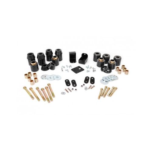 Rough Country’s innovative new 1-inch Polyurethane Body Lift reduces chassis noise and vibration, featuring specially blended Polyurethane bushings that are resistant to fluids and road grime. Kit includes Grill Support Brackets, Radiator Shroud Relocation Brackets, Shift Relocation Brackets for automatic transmissions and durable Grade 8 Hardware.