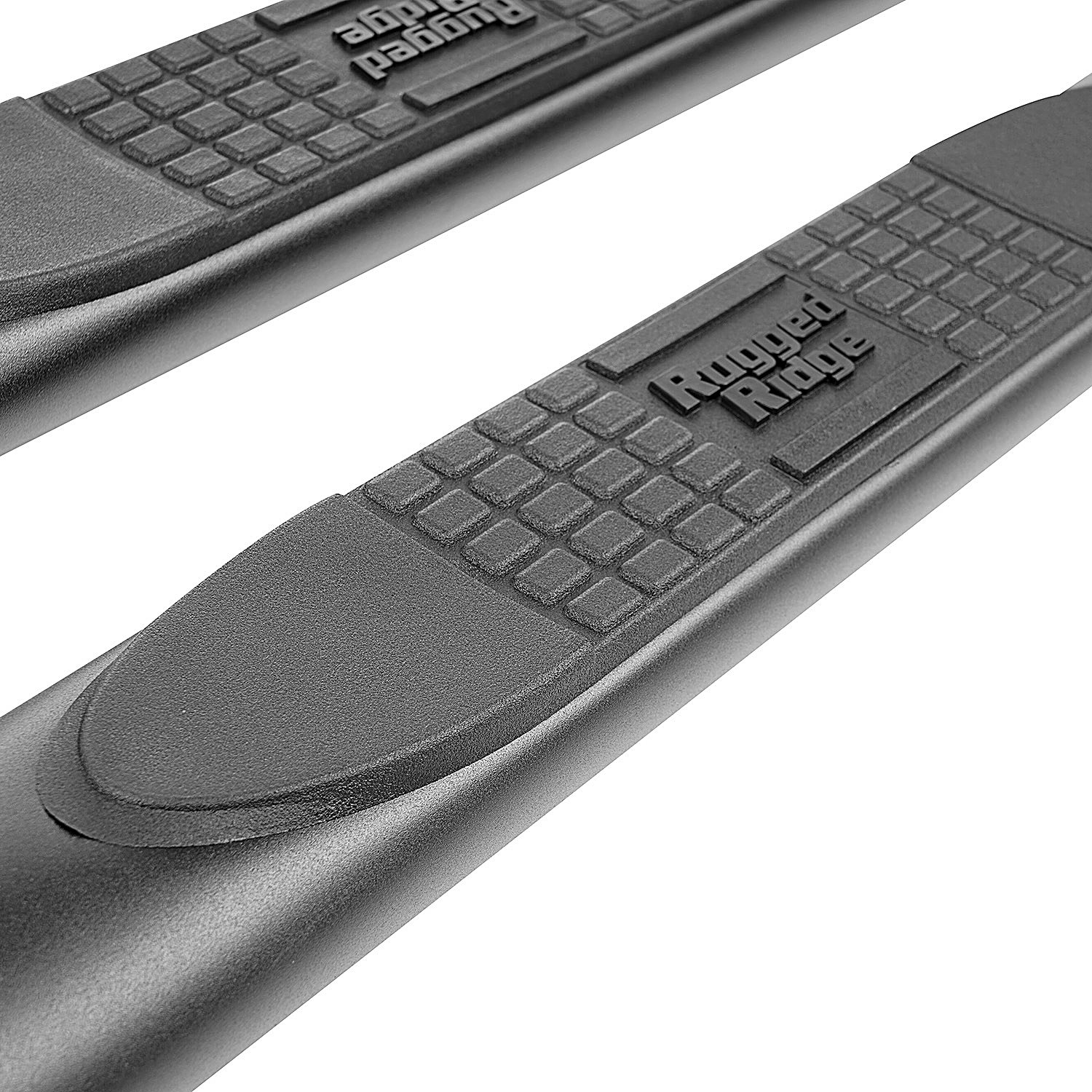 Add handiness and a sleek appearance to your Jeep Gladiator JT with these Rugged Ridge 4-Inch Round Fine Textured Side Steps. Manufactured from steel tubing with .07-inch thick wall, e-coated, and finished in a fine-textured black powdercoat for long-life. High-strength mounting brackets designed for years of flex-free use are included. Step pads are UV-treated and help to provide greater traction in most weather conditions. The side-steps hold up to 300-lbs. These are manufactured specifically for your Gladiator and are not a universal design!