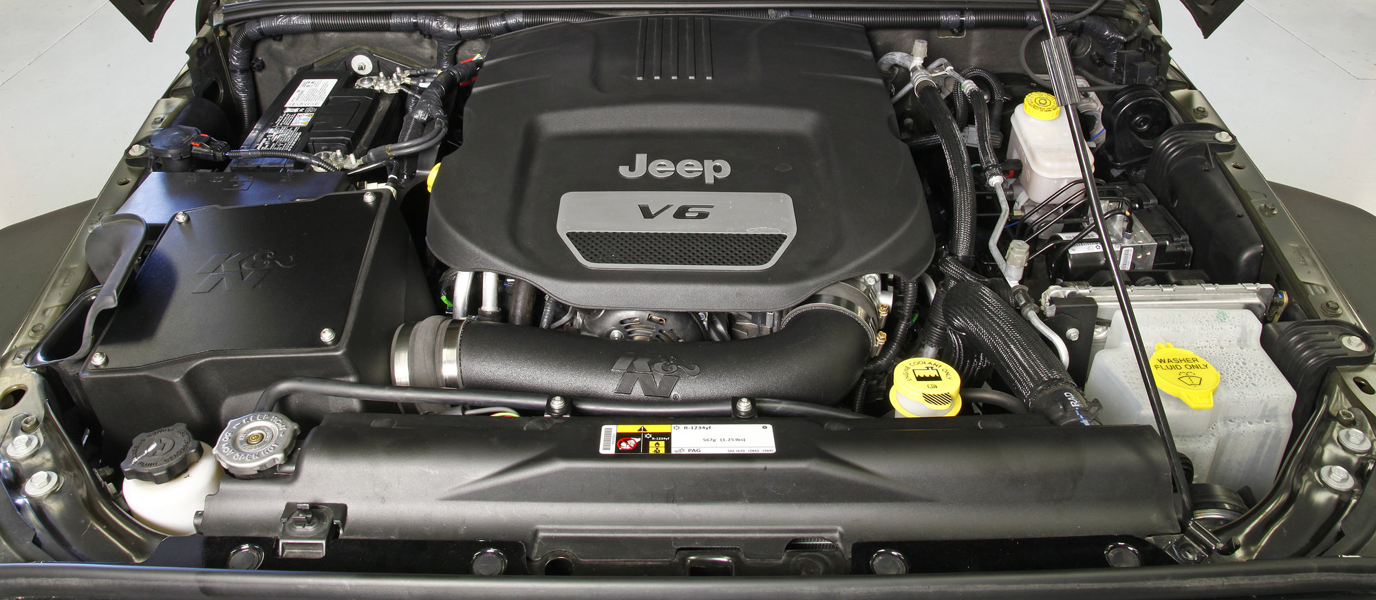 The K&N 63-1573 Cold Air Intake Snorkel Kit replaces the restrictive factory air filter and air intake housing on specific Jeep Wrangler models. K&N air intakes are designed to dramatically reduce air intake restriction allowing your engine to inhale a larger amount of air than the factory air filter assembly. More air means more usable power and acceleration throughout the engine’s RPM range. The air intake includes a uniquely designed snorkel system that brings in outside air from an ideal location to allow you to ride your Jeep hard in extreme off-road conditions. Fresh air is directed through the low-restriction snorkel tubing and into a replacement K&N roto-molded air box that contains a chrome topped K&N high-flow air filter. An aerodynamically engineered intake tube smoothes and straightens the air flow before it goes directly into the engine’s throttle body for a guaranteed power gain. The oversized cone shaped air filter can be used for up to 100,000 miles before servicing is needed depending on driving conditions. This air intake is relatively easy to install, usually in 90 minutes or less using your vehicle’s existing factory mounting points.