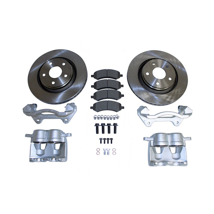 This Brake Kit features Calipers with a pair of 64mm pistons for increased clamping forces, resulting in increased piston area over the single piston calipers. The 13″ vented Brake Rotors give the braking system greater leverage. The end result of the Big Brake Kit when compared to OE brakes is a 22% shorter 60-0 distance! A 17″ wheel is required. Brake Master Cylinder (Replaces Part #: 68091278AB) is also suggested for better brake pedal feel and greater braking performance.