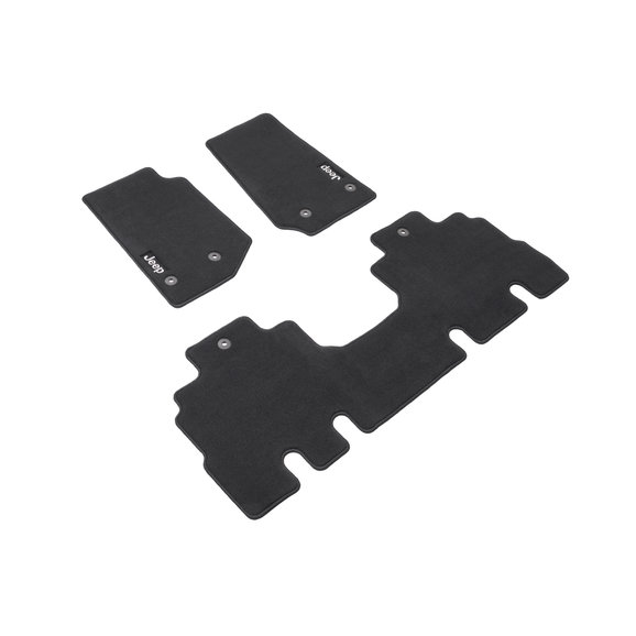 The Mopar Carpeted Floor Mats in Black feature a prominent Jeep logo for your 14-18 Jeep Wrangler Unlimited JK 4 Door. A premium 24 ounce carpet custom made for your Jeep with rubber nibs on the back. Keeping these mats in place for all your adventures.