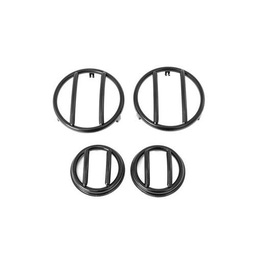 Protect your turn signal and side marker lenses with this 4 piece set of black euro guards from Rugged Ridge. Fits 07-16 Jeep Wrangler. Protecting your turn signal and side marker lenses just got a whole lot easier! Now offering affordable protection and a rugged look, this four piece set of black euro guards are constructed of durable powder coated steel, designed to last and provide a true attention to detail, The side marker light guards are a great complement to our front light euro guards. The turn signal light guards are designed to match our headlight euro guards and feature the same great style and construction. No drilling required for installation.