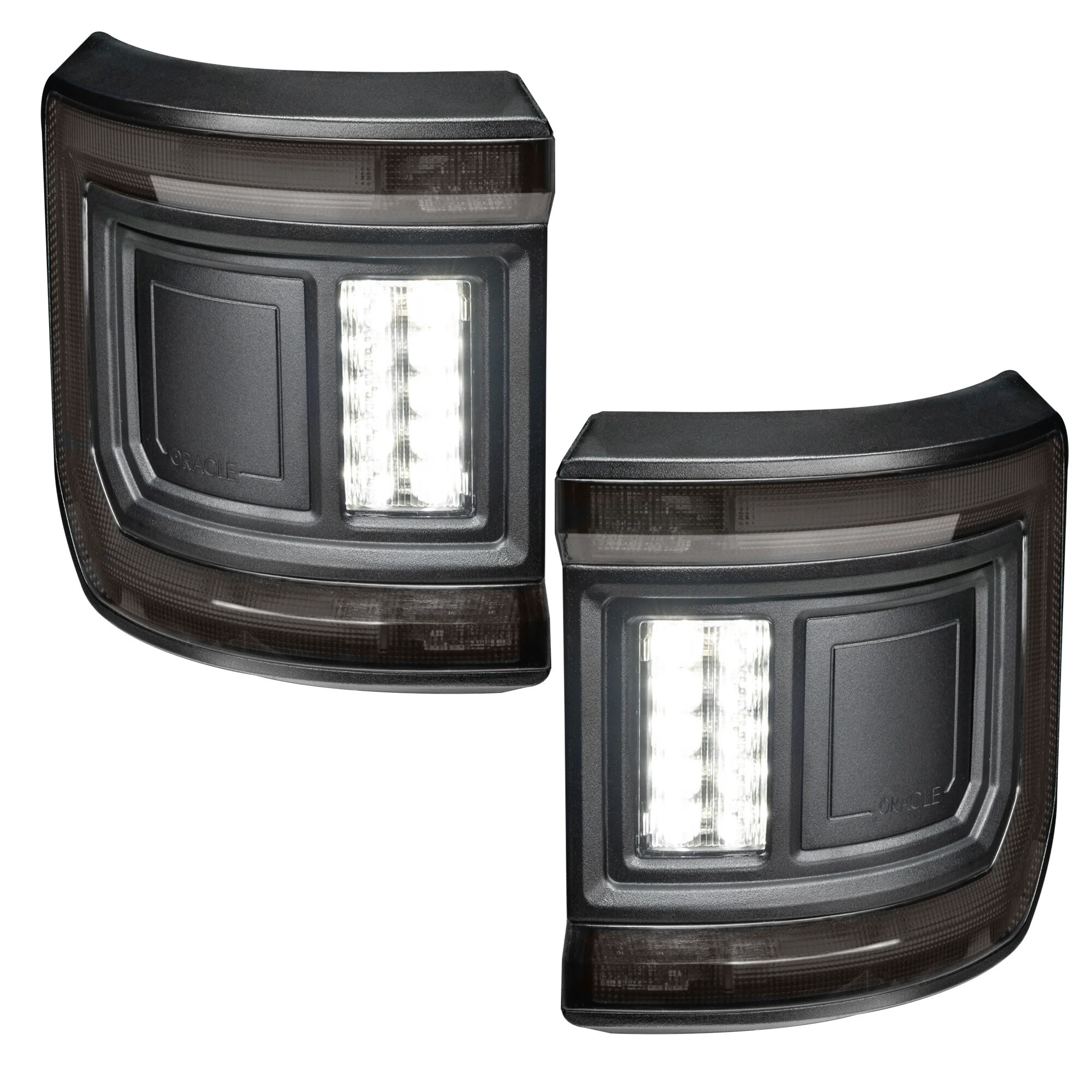 Style: These wrap-around lights provide improved LED lighting features including high-powered reverse lights and signature perimeter lighting. The low-profile, wrap-around design can be visible from any rear angle. Comes in your choice of Standard Red or a sleek Black Out Tinted Version.