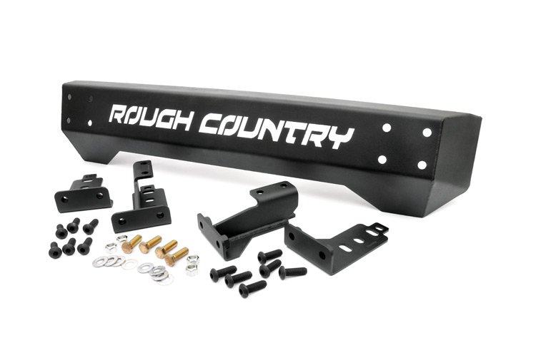 Want the benefits of a stubby bumper without running a winch? Now you can upgrade your look and performance at a fraction of the cost. Rough Country’s TJ/YJ Bumper Skin attaches easily to the frame horns with a bolt-on installation process. This lightweight bumper is less than 40lbs, with a true stubby design allowing more travel, better approach angles, even the ability to run wider tires! With a high tensile steel design, this bumper offers protection and style, featuring a laser cut “Rough Country” logo that’s sure to turn heads on and off the road. Best of all, this affordable and sleek bumper can also house our popular line of bumper attachments. Upgrade your bumper with a set of D-rings, Light Bar, or for a fierce, sporty look, go all out with the Stinger attachment.