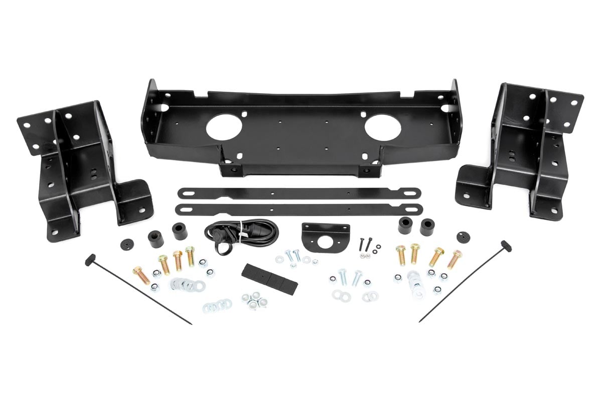 Give your Jeep a sleek recovery system that blends in seamlessly with the factory aesthetic with Rough Country’s WK2 Hidden Winch Mounting Kit! This convenient winch mounting kit allows you to upgrade your vehicle with any standard-sized winch, giving you the ability to make it out of any tough spots you may encounter while also adding a more interesting, aggressive look to the front end of your vehicle.Each Hidden Winch Mounting Kit includes a remote port relocation system that moves the terminal from beside the winch to just under the hood for easy operation without fumbling around underneath the vehicle.Each kit includes a handy template allowing you to create the fairlead route in no-time flat. Rough Country’s Hidden Winch Mounting Kit features a bolt-on installation process making it easy to upgrade your vehicle! This kit can accommodate most synthetic winches and hawse fairleads. Upgrade your Jeep and be ready for recovery in an instant!