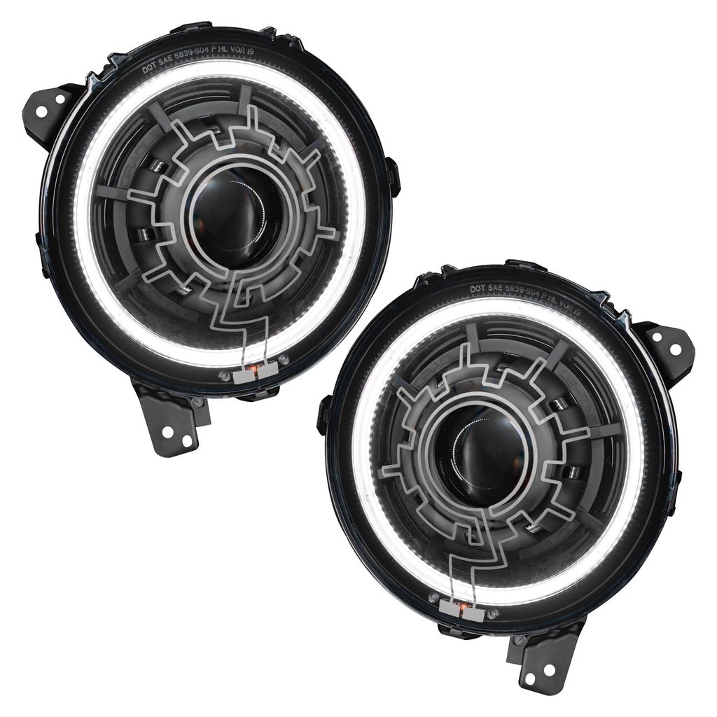 Oculus 9″ Bi-LED Projector Headlights with White Halo Ring and Heated Lens for Jeep Wrangler JL 2018-2024 and Gladiator JT 2020-2024