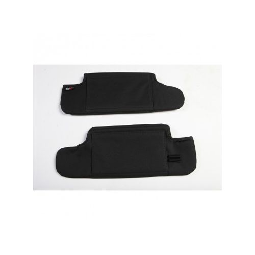 Instantly turn those plastic factory sun visors on your 2010-2016 Wrangler into usable storage space while getting a clean new look with Custom Rugged Ridge Visor Covers. Each pair of visor covers quickly and easily attaches to your factory sun visors without drilling or vehicle modification. Constructed of durable interior matching textured black vinyl, these covers will provide the storage and features you want while looking great. The driver’s side cover features see through bottom window to expose the factory Warning labels and an inside storage pocket with custom storage options; two pen/tire gauge holders, clear window registration/insurance card holder, mesh storage pocket for commonly used items like garage door openers and a pen/tire gauge holders, clear window that can hold CD’s and cell phones. The passenger side cover offers the same cavernous storage pocket as the driver’s side (great for road maps.) but also features a vanity mirror. Packed as driver and passenger set, these great covers are the perfect add on accessory for your Jeep! Will not fit 2007-2009 Wrangler due to factory visor change.