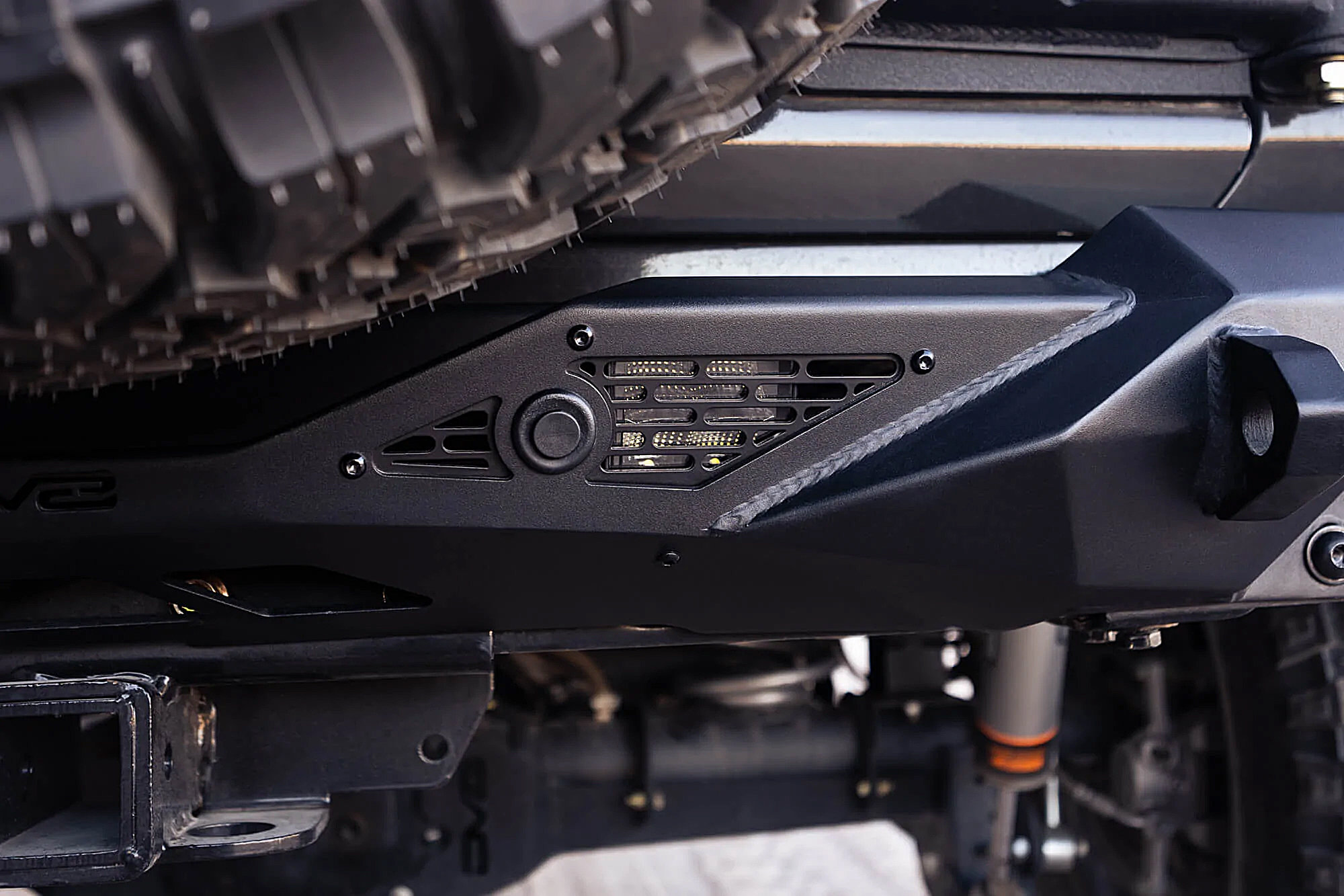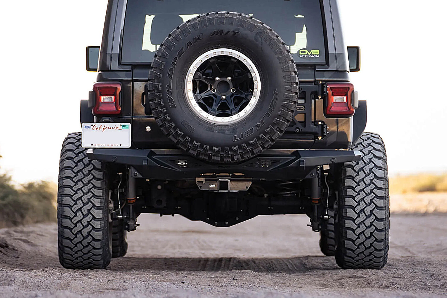Step your off-road game up with the new Spec Series line of bumpers from DV8 Offroad. This Jeep JL Rear Bumper has everything you need for accessing tough terrain – with a stylish, dynamic look and top-of-the-line protection. Engineered for aggressive rock crawling, this high clearance rear bumper offers extreme protection from obstacles and other hazards off the beaten path. Its ultra-low profile means great ground clearance so you can navigate rocks, roots, and other rough terrains like nothing else. Got stuck? With two clevis mounts that take ¾” D-ring shackles, you have excellent recovery options to get you back on the trail. Towards either end of the bumper are mounting points for a 3-inch light pod for supplemental trail lighting.