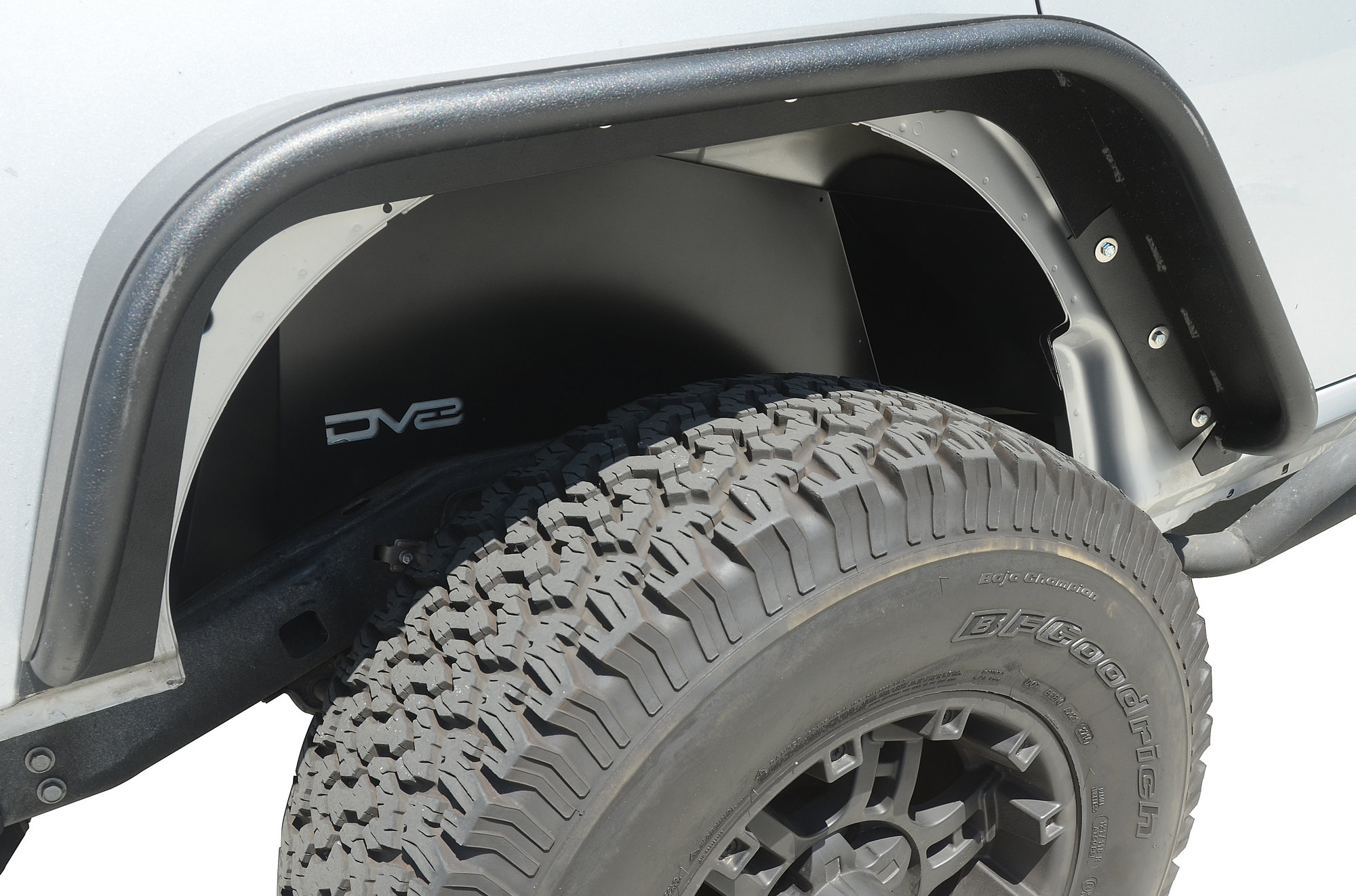 These aluminum inner fenders from DV8 Offroad are designed to finish your Jeep Wrangler JK when aftermarket fenders are installed. They provide better airflow and a clean, streamlined look.