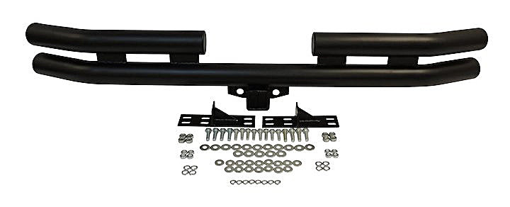 The Crown Automotive Rough Trail Rear Tube Bumper with Receiver is for the Jeep Wrangler YJ and TJ as a direct bolt-on with no drilling. The 3″ tubing has closed ends and a semi-gloss black finish. An integrated 2″ receiver is welded in place for increasing your cargo capacity with bike racks and baskets. a 200 lb tongue rating, hitch is not rated for towing. Easy installation with included hardware and brackets for added strength, no drilling involved.