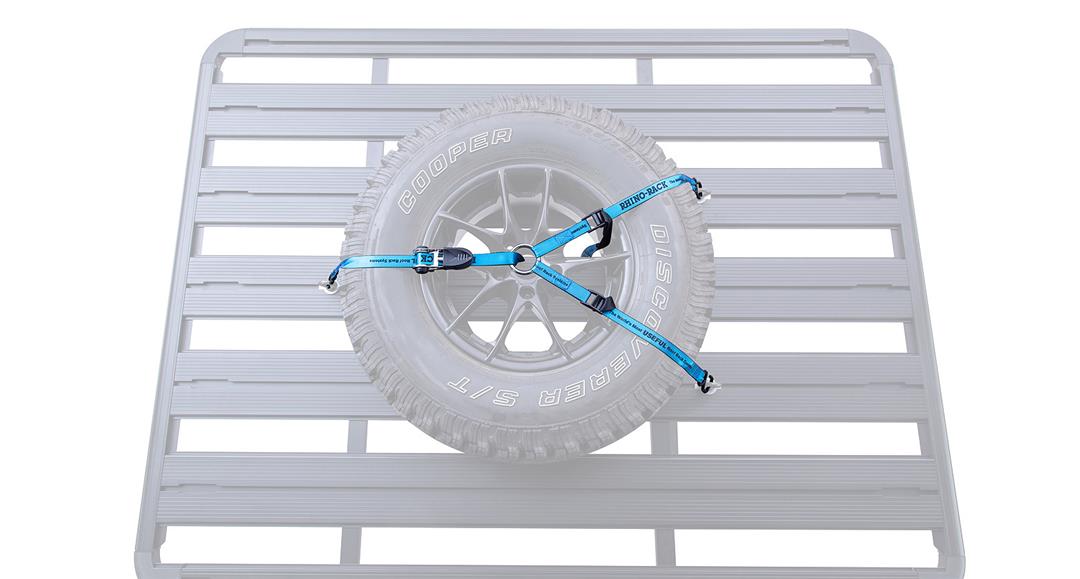 Rhino-Rack has developed a spare wheel strap to securely fasten your wheel to our range of Pioneer Trays and Platforms so you can free up the space inside your vehicle. The unique design features two of the three straps can be incrementally adjusted so the stainless steel ring is always positioned in the center of the wheel, offering maximum holding capacity. The tightening ratchet and ring are made from stainless steel so it won’t corrode.