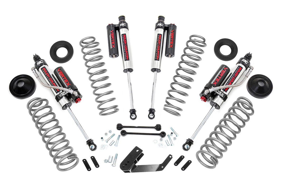 Who says your daily driver and your weekend warrior can’t be the same vehicle? The 3.25-inch N3-Series Kit for Jeep JK was engineered by Rough Country’s Research and Development Team to give the perfect blend of off-road performance and smooth highway ride. A set of application tuned, lifted coil springs are included in this kit along with a set of rear sway bar links, coil spring spacers and a rear track bar bracket! Improve your on and off-road ride quality with Rough Country’s premium N3 shocks! These 10-stage variable valving, high-pressure Nitrogen charged shocks offer a fantastic blend of off-road action and smooth highway ride quality. With a durable 18mm spring-loaded piston rod and faster-cooling 54mm shock body, this shock offers up to 36kN Tensile Strength for a long lifespan of impressive vibration dampening. Features natural rubber bushings and an eye-catching metallic silver paint. Features: Easy bolt-on installation Increased ground clearance Clears up to 35″ tires Factory tuned coil springs are based on the stock spring rate Notes: Does NOT fit 2-door models. If planning on running 35″ tires on factory wheels, double check clearance between the front tire, lower control arm and sway-bar links. 2012-2018 models require exhaust modifications to clear the front driveshaft (#1030)