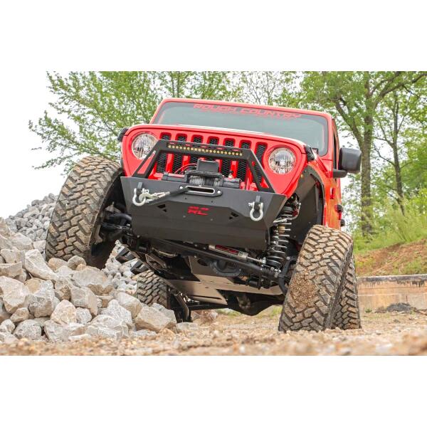 Take to the trails in absolute confidence with Rough Country’s JL Skid Plate Armor Kit. This easy to install, all-inclusive kit is designed to offer total protection for the underside of your Jeep; protecting crucial components such as the gas tank, transfer case, and engine.These 3/16-inch thick plate steel panels are designed to keep sensitive components protected from rocks and debris that could otherwise damage your vehicle. Rough Country’s Skid Plate Armor is designed with recessed mounting points to ensure you never snag a bolt-head when crossing over tough terrain.Each JL Skid Plate kit features durable, protective panels designed to fortify the engine oil pan and transmission, transfer case, and (optional) gas tank giving you unbridled protection against off-road obstacles.This easy to install skid plate system features a 100% bolt-on installation process with no cutting or drilling required. Rough Country’s gas tank skid installs directly over the factory gas tank skid for easy assembly and a double layer of protection. The engine skid plate features an oil-drain access so you can easily change oil without removing your additional protection. Obliterate off-road obstacles with ease knowing that Rough Country has you covered!