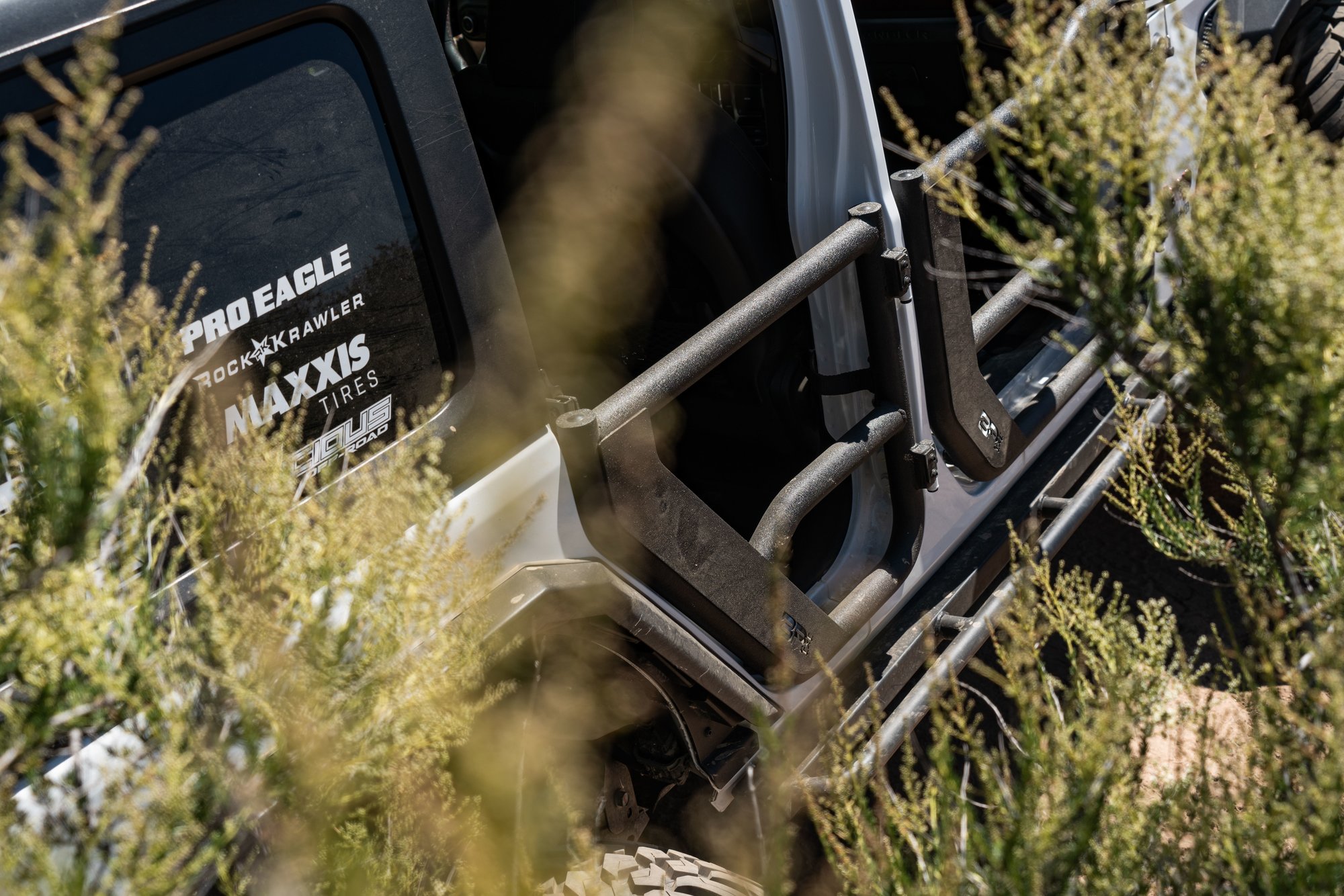 Doors Rear Outfitting your Jeep with a set of Tube Doors from Body Armor is a great way to remain safe while feeling the fresh air on the road or the trails. These doors are available in front or rear sets for Jeep Wrangler JL & Gladiator JT models and are constructed of 2″ steel tube and then finished with a textured black powder coat to protect them from the usual dings and scrapes you may incur while on the trails. Get that open air feeling that Jeep enthusiast love with the Body Armor Tube Doors!!!