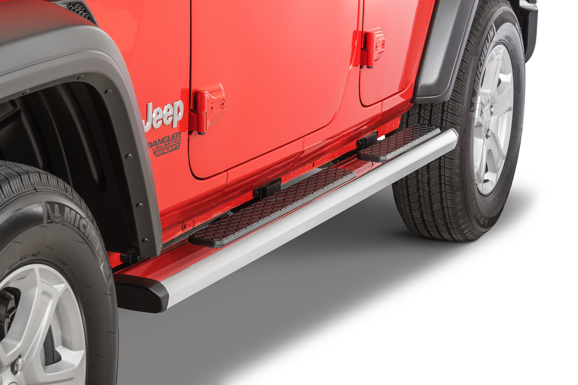 These Tubular Side Steps will help you and your passengers enter and exit your Wrangler JL easily. Adding great styling and functionality these side steps will also protect the body side of your Jeep from kicked up road debris. Mopar Side Steps for your Wrangler are made from extruded aluminum, e-coated then powder coated textured black for superior durability. Black plastic molded steps provide traction when entering and exiting your wrangler. The extruded aluminum design provides excellent strength. These steps install easily to the under body and pinch weld flange exactly the same as production side steps.