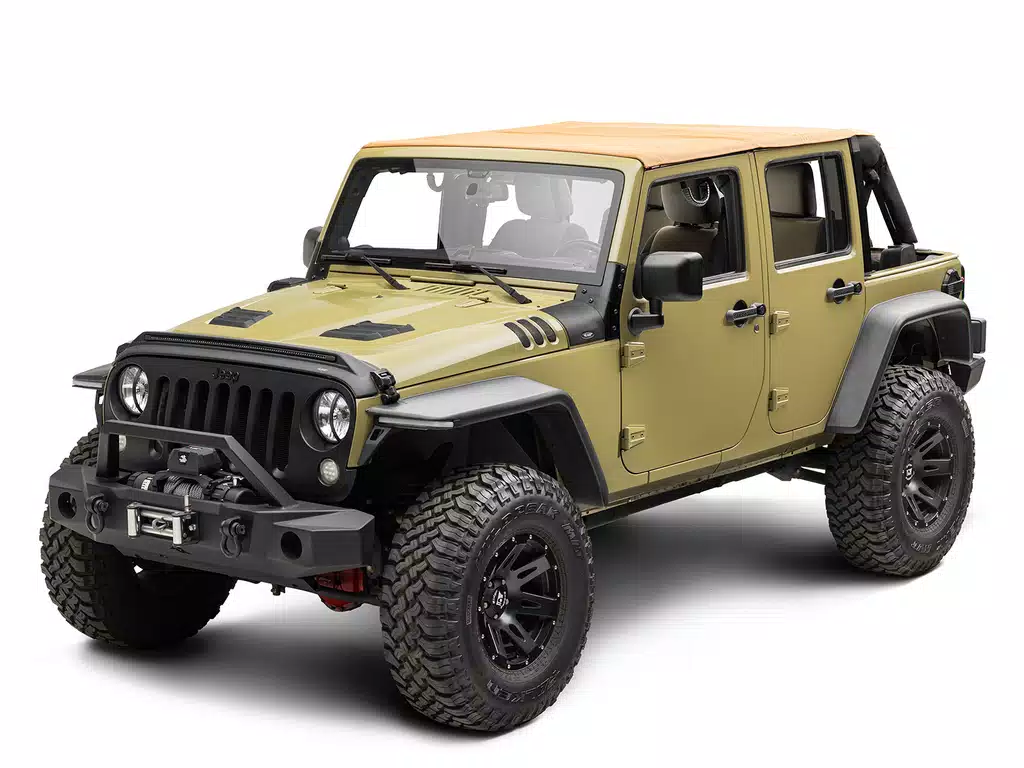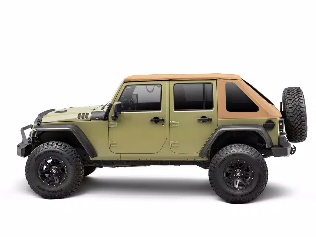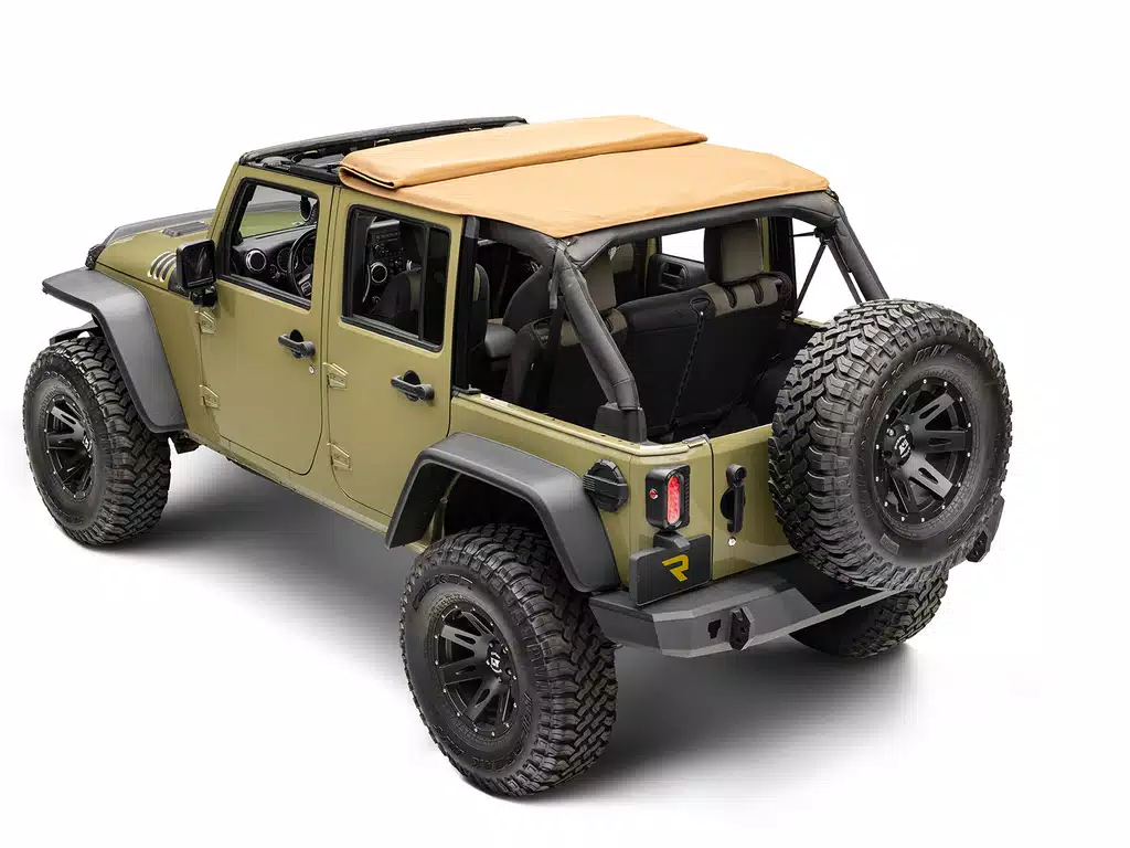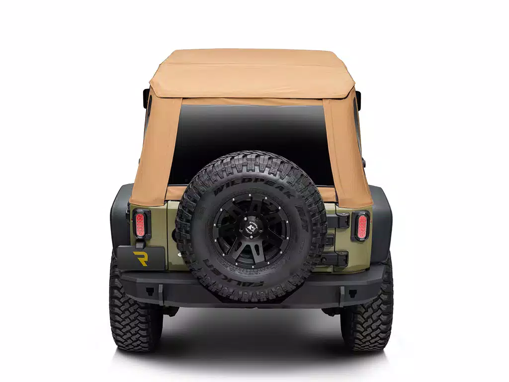Rugged Ridge is no stranger to making great replacement Jeep tops, and they have added the Voyager Fastback Tan Soft Top to their line-up for JK, JL, and JT Jeeps! The Voyager top is crafted from 30 oz Tan Twill fabric into a fastback style top with sealed seams, removable and stowable tinted windows, and even a fold-back feature over the front seat to let the sun and breeze in. This is everything you could ask for in a replacement top for your beloved off-road machine, and it is even backed by a 5 year limited warranty!