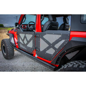 Driving down the trails in your Wrangler JL with half doors on is a great feeling. Now with DV8’s Aluminum Half Doors with Screens you can feel that open air in style. With the removable aluminum screens you can customize your doors to match your Jeep or paint them any color you want. Best of all these doors include mirrors to keep you street legal while you are on the highway.