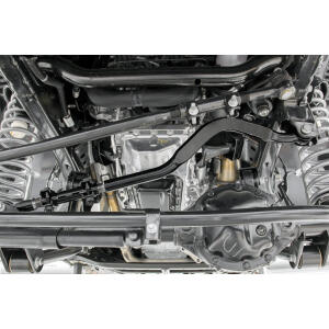 Notes: Does NOT fit 2-door models. 2012-2018 models require exhaust modifications to clear the front driveshaft (#1030) On Automatic equipped vehicles; due to use of an oversize driveshaft from the factory and inadequate factory clearance it may be possible for the front driveshaft to come in contact with the automatic transmission pan tearing the factory boot and rubbing on the shaft. Generally this occurs during heavy articulation when front sway bar links are disconnected and longer shocks are installed. If this is found to occur, the proper procedure would be to replace the oversize factory shaft with an aftermarket smaller diameter shaft to increase clearance between the transmission and front driveshaft. Rough Country does offer this driveshaft if needed.